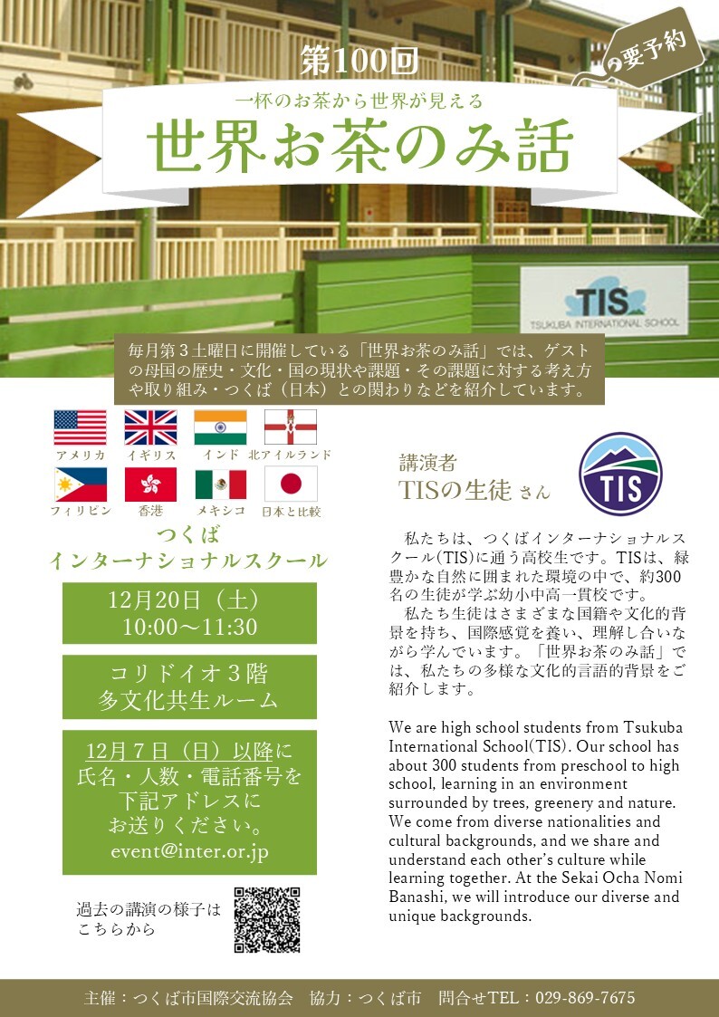 第100回 世界お茶のみ話は『つくばインターナショナルスクール編』です。